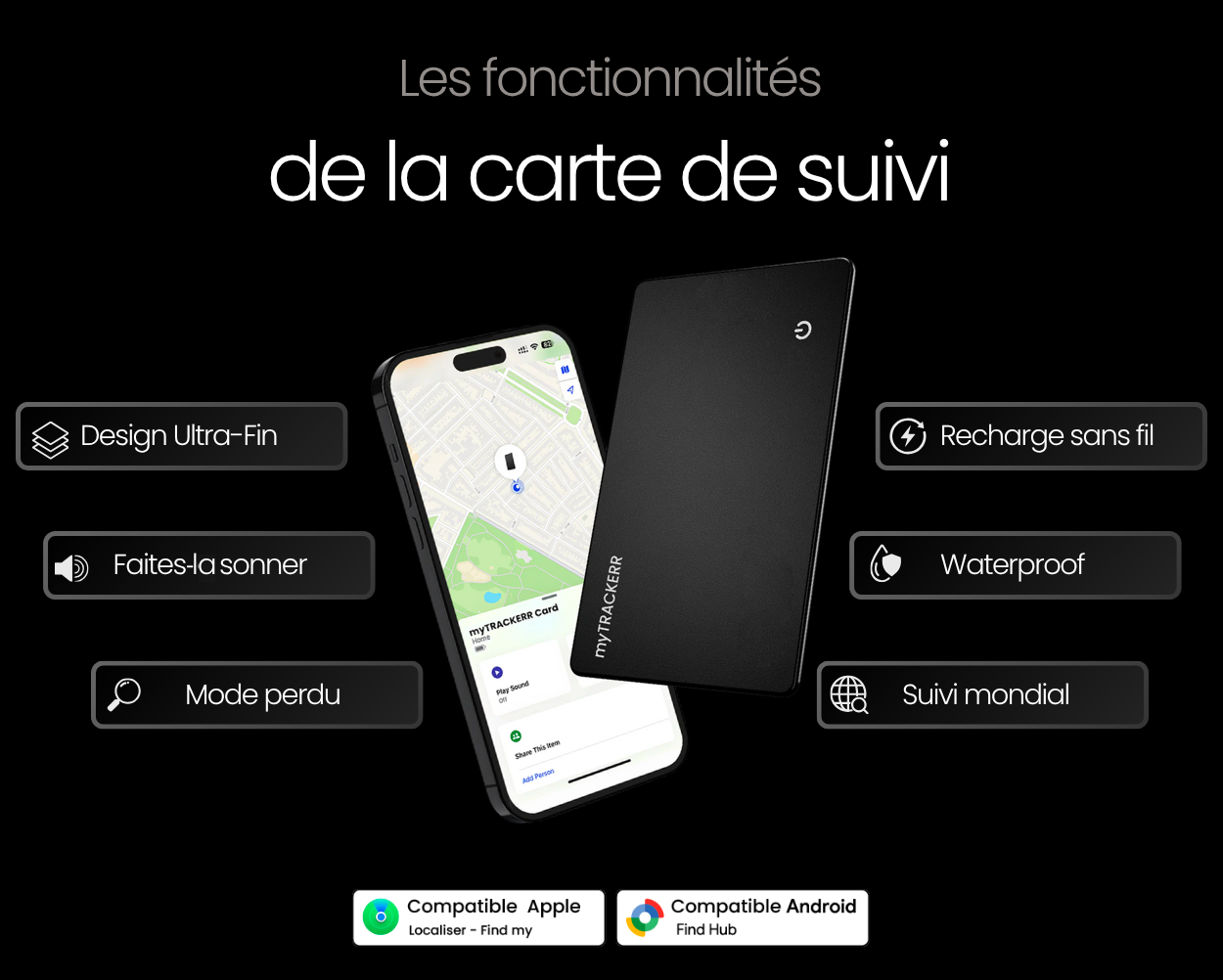 La carte myTRACKERR est compatible avec les appareils Apple et Android.